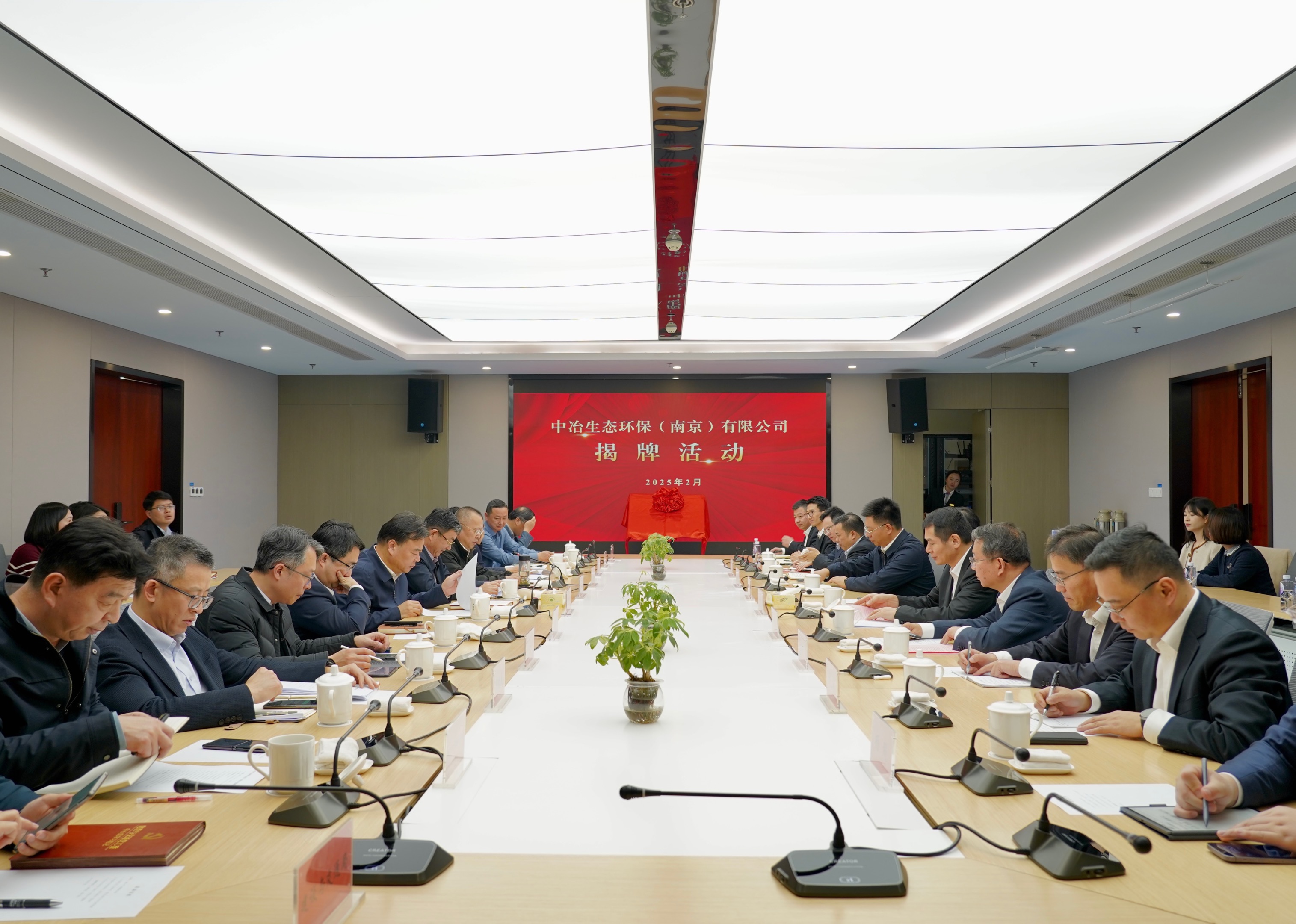 On February 28, Zhu Guangxia, Member of the Standing Committee of the Party Committee and Vice President of China MCC, and his delegation visited Lu Weidong, Member of Nanjing Municipal Committee and Secretary of Party Working Committee of Nanjing Jiangbei New Area. Both parties had an in-depth exchange on further cooperation, and jointly witnessed the unveiling of MCC Eco-Environmental Protection Group East China Headquarters and MCC Eco-Environmental Protection (Nanjing) Co., Ltd.